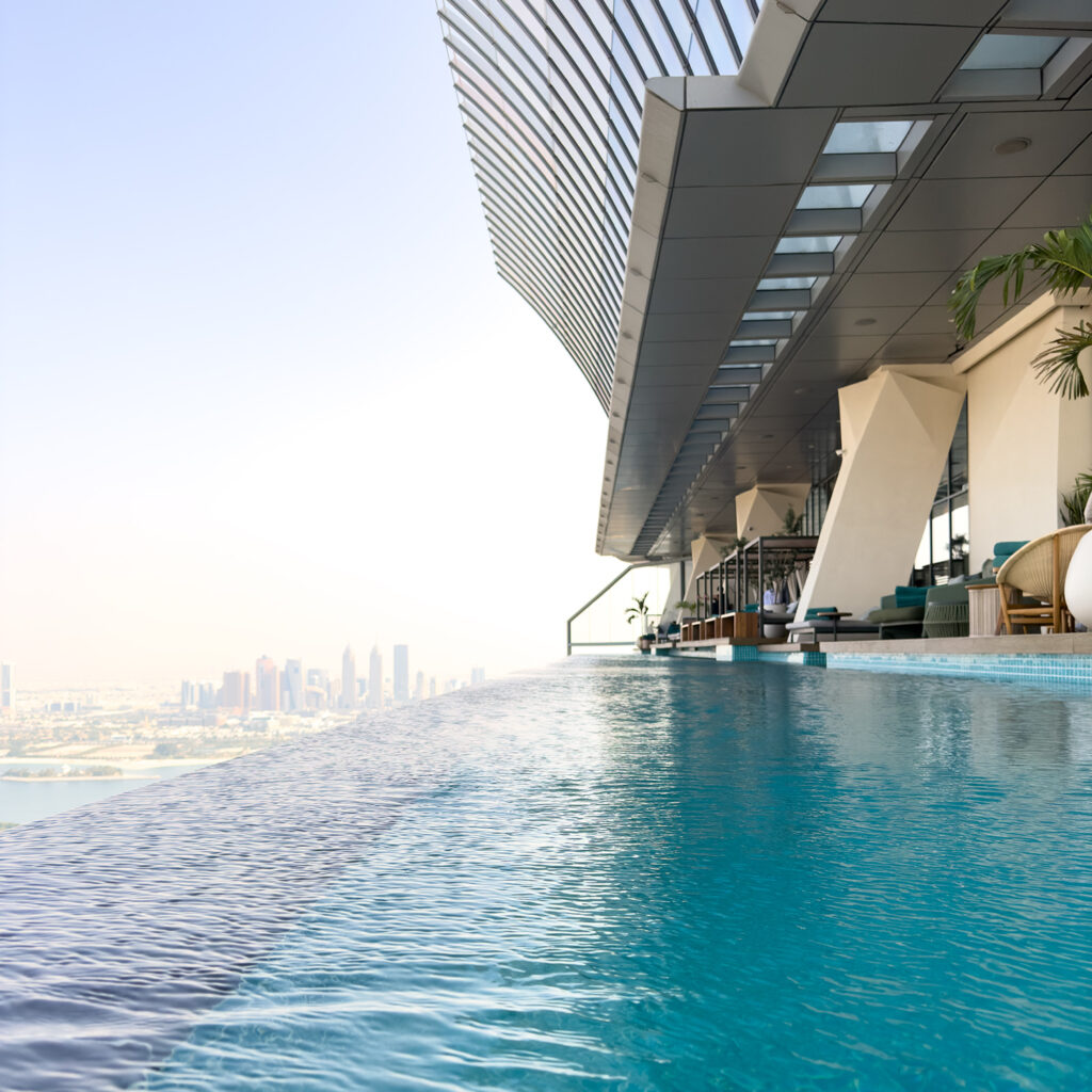 Der Aura Skypool wurde im Jahr 2021 eröffnet und war von Beginn an als exklusive Destination für anspruchsvolle Besucher geplant. Entwickelt wurde er von der Sunset Hospitality Group, die in Dubai für ihre luxuriösen Lifestyle-Konzepte bekannt ist. Das Ziel war es, einen Ort zu schaffen, der nicht nur einen einzigartigen Blick auf die Metropole bietet, sondern auch ein rundum durchdachtes Wohlgefühl vermittelt. Die Architektur des Pools wurde so gestaltet, dass sich die Wasserfläche scheinbar nahtlos mit dem Horizont verbindet, wodurch ein unbeschreibliches Gefühl von Weite und Freiheit entsteht. Heute ist der Skypool einer der gefragtesten Orte der Stadt und gehört zu den beliebtesten Instagram-Motiven Dubais.