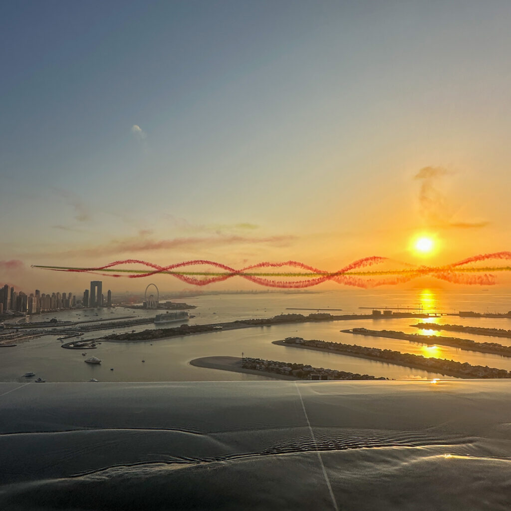 Der wohl beeindruckendste Aspekt des Aura Skypools ist der unvergleichliche Rundumblick auf Dubai. Von hier aus kann ich die Palm Jumeirah, das Burj Al Arab, den Burj Khalifa und sogar die Weiten des Arabischen Golfs sehen. Besonders zum Sonnenuntergang verwandelt sich die Aussicht in ein goldenes Spektakel, das kaum zu übertreffen ist.